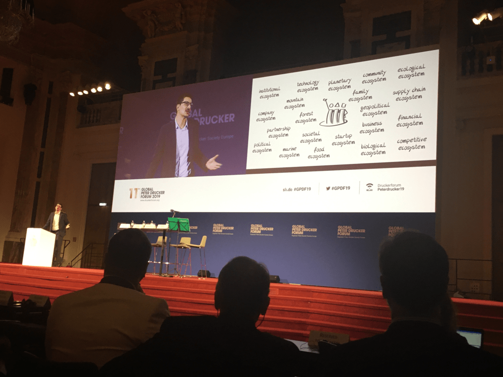 Alexander Osterwalder, inventor of the business model canvas and founder of Strategyzer, gave the opening address at the Global Peter Drucker Conference in Vienna on November 20th, 2019. He called on all 1100 participants to think about their role not only in business or in academia, but also in society throughout the two-day conference.